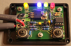 Innenansicht des Mikrocontroller gesteuerten DC - Lichtdimmers mit Tiefentaldungsschutz und Batteriestatusanzeige. Der Aufbau ist robust, die Anschlußpads sind für eine universelle Kabelkonfektionierung und größere Aderquerschnitte (2,5qmm) ausgelegt. |